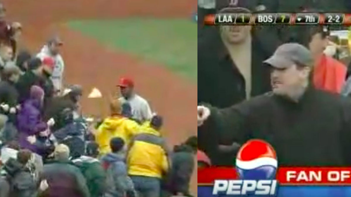 Angels left fielder Garret Anderson began making a chase for the fly ball. He reached in to the stands to try and make the catch, but Red Sox fan Jason Sole made an attempt of his own, preventing Anderson from getting to the foul ball and continuing the at bat for Drew.