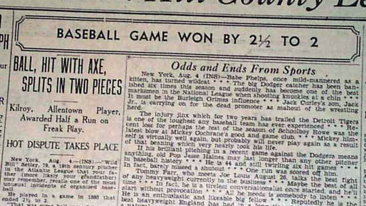 In an unprecedented turn of events, according to Setley, Kilroy sliced the ball in half, with one half being caught by the first baseman, and the other half going over the fence. The umpire’s initial call was an out, but after Kilroy finished circling the bases, he argued that since half of the ball went over the fence, then Allentown should earn half of a run and win the game. After deliberation, discussion, and arguments between both teams and the umpires, the officials awarded Allentown the half of a run and the 2 1/2-2 win.