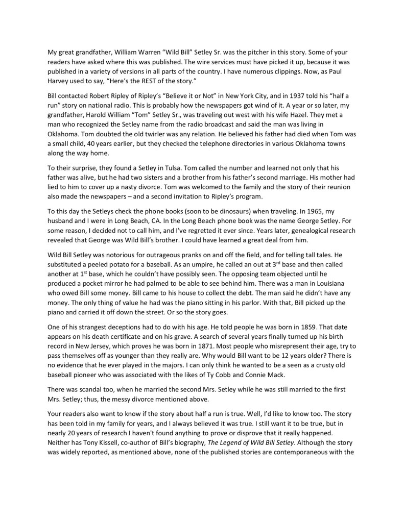 Interestingly, on April 29, a woman named Judy Wright (@JwPolliglot) responded to Porter’s tweet saying that she was the great granddaughter of “Wild Bill” Setley. She left a PDF response with her family’s accounts of the event: