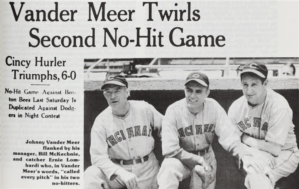 Cincinnati Reds pitcher Johnny Vander Meer, during his rookie season, completed a feat that had never been done before and may never occur again. On June 11, 1938, Vander Meer threw a no-hitter against the Boston Bees (now Atlanta Braves). Just four days later, in the first night game at Ebbets Field, Vander Meer threw another no-hitter against the Brooklyn Dodgers, becoming the first, and only, player in MLB history to throw no-hitters in back-to-back starts.